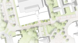 Die im Norden entlang der Mensa angelegte Pflanz- und Platzfläche dient als repräsentative Vorplatzsituation für die neu angelegte Mensa und stellt zugleich einen neuen Auftakt für das Schulzentrum dar. Ein Wechselspiel aus geometrisch angelegten Heckenstreifen gliedern das Pflanzbeet und schaffen einen transparenten Puffer zur angrenzenden Straße.
