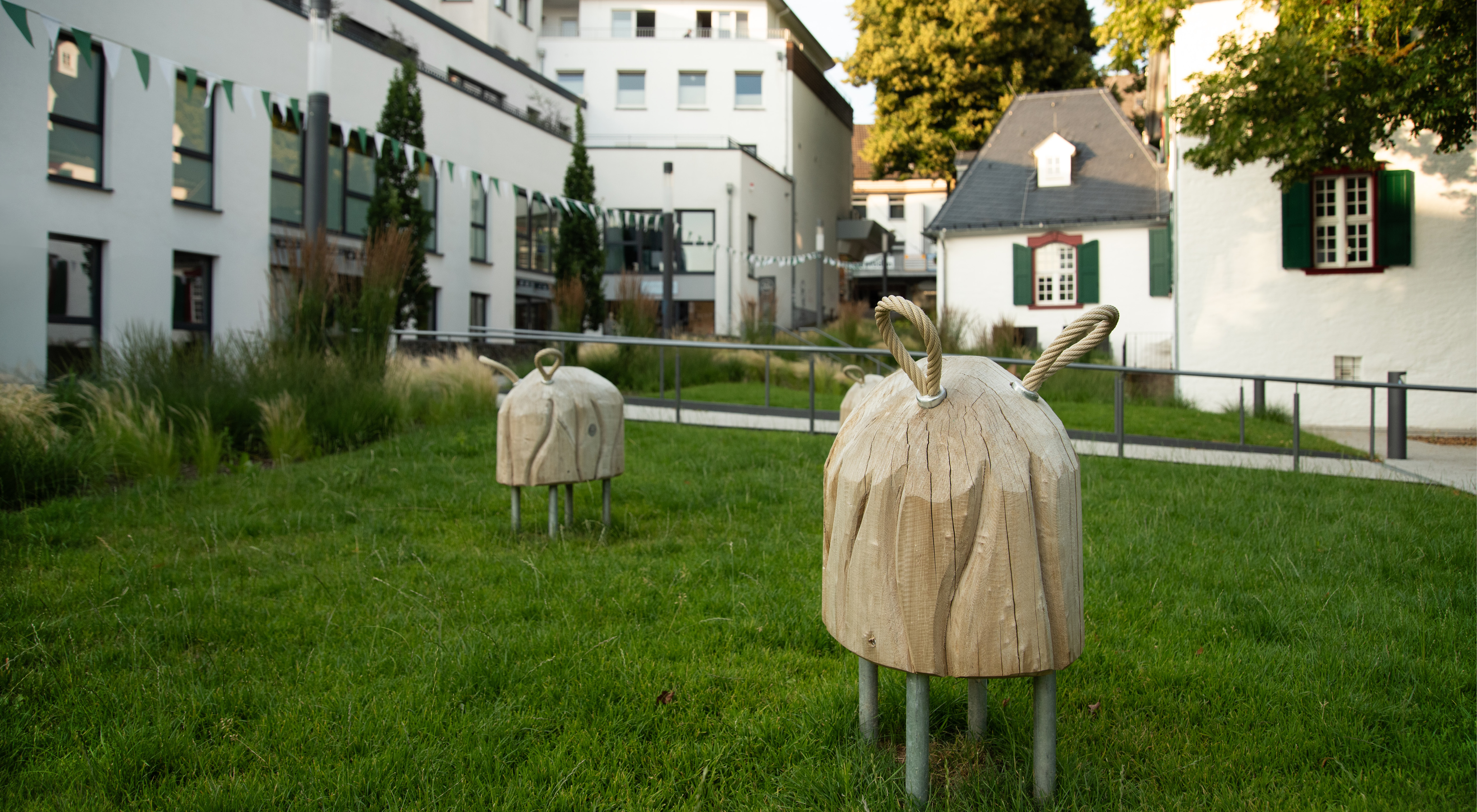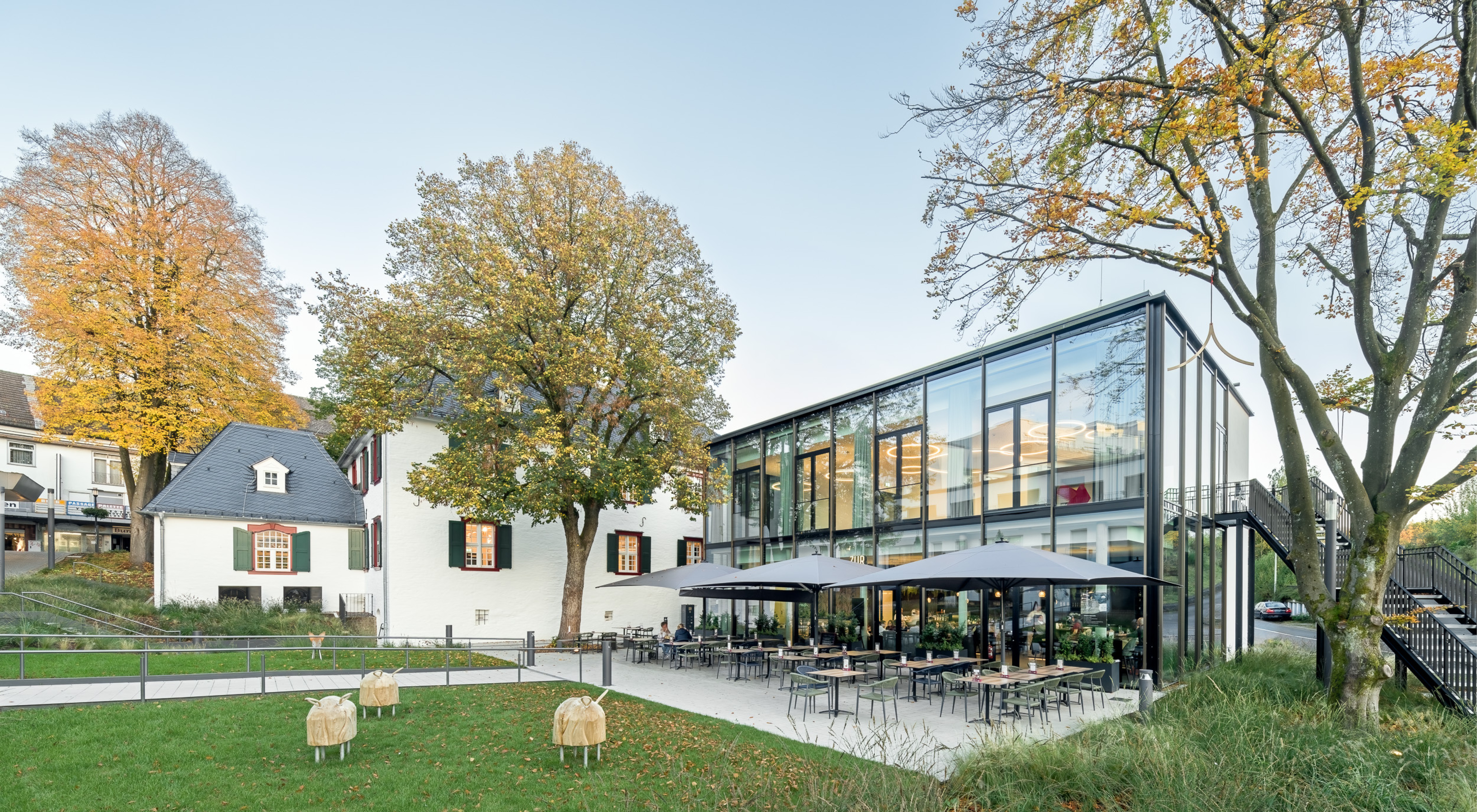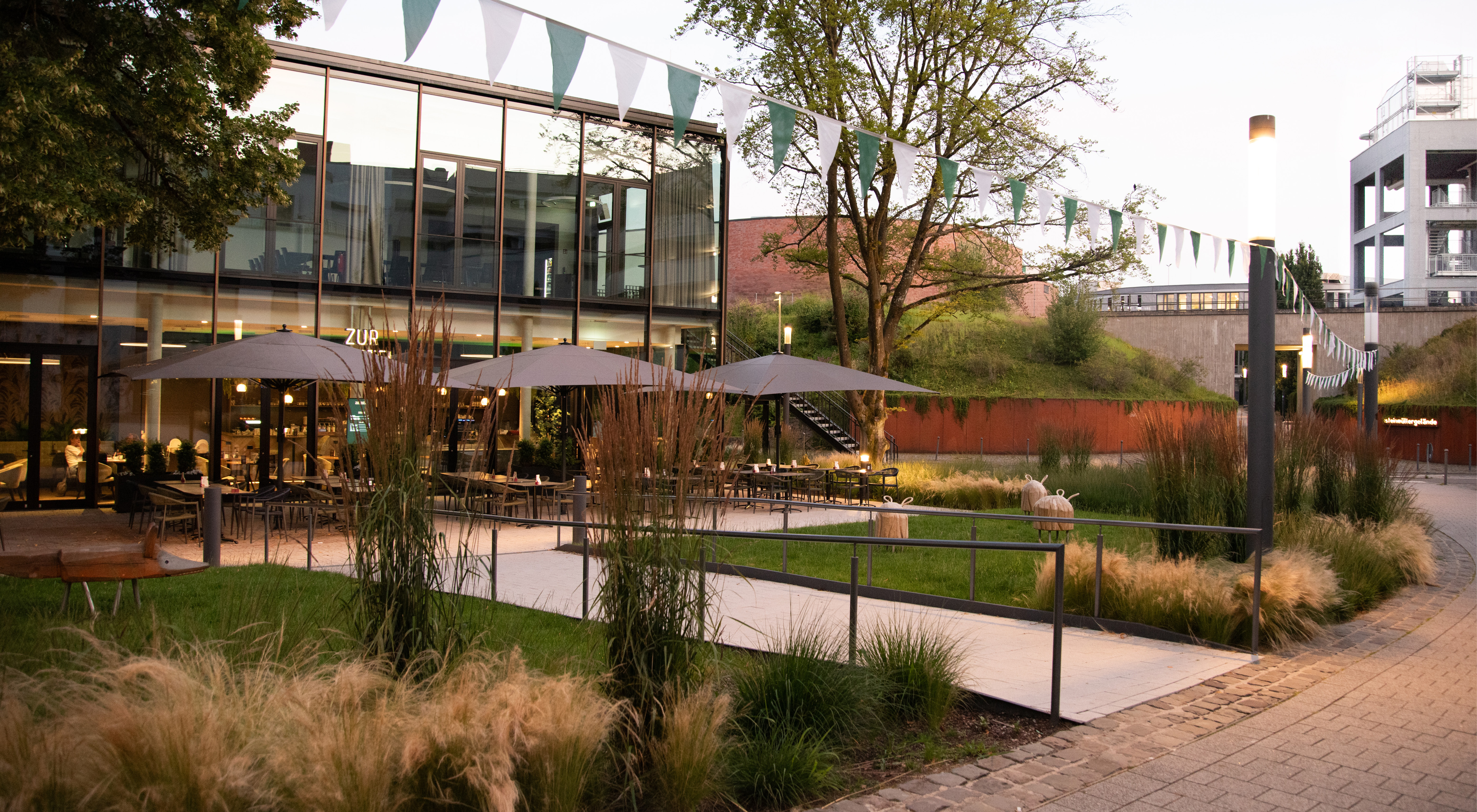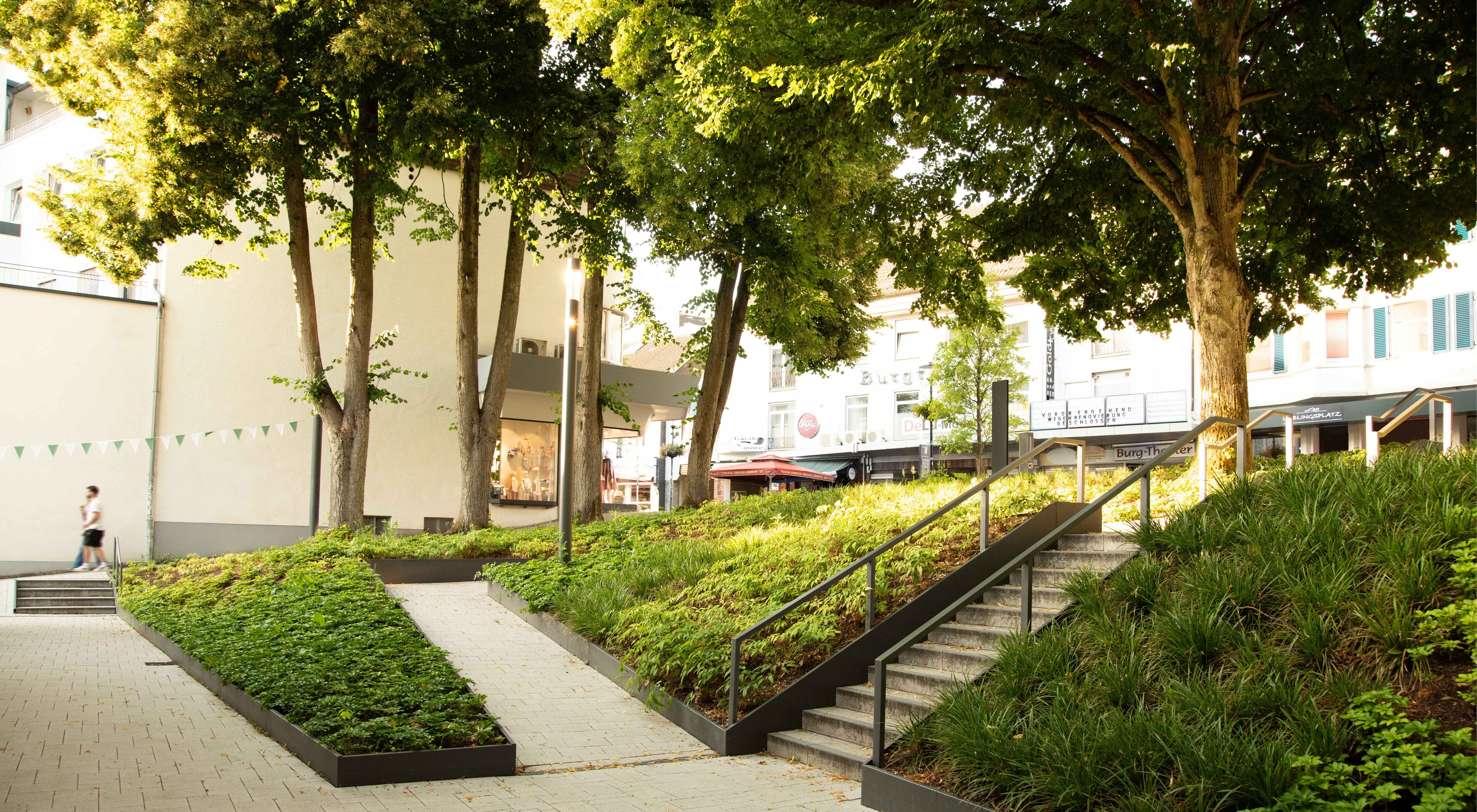 Das Gestaltungskonzept für die Freianlagen der Alten Vogtei betont die historische Bedeutung des Gebäudes und verbindet sie mit zeitgemäßer Freiraumgestaltung. Im Mittelpunkt steht ein grünes Entree, das barrierefrei den Höhenunterschied von der Kaiserstraße zum Gebäude überwindet und durch geometrischen Pflanzflächen, Stahlkanten und Beleuchtung in Szene gesetzt wird. Ein Vorplatz bietet Raum für Empfänge und Begegnungen. Rückwärtig ergänzen modellierte Stauden- und Gräserflächen einen geschützten Bereich, der auch für Außengastronomie genutzt wird. Hochwertige Materialien, klare Formen und ein zurückhaltendes Beleuchtungskonzept schaffen eine ruhige, atmosphärische Gestaltung, die das historische Gebäude hervorhebt und seine Rolle als Wahrzeichen im Stadtraum stärkt.