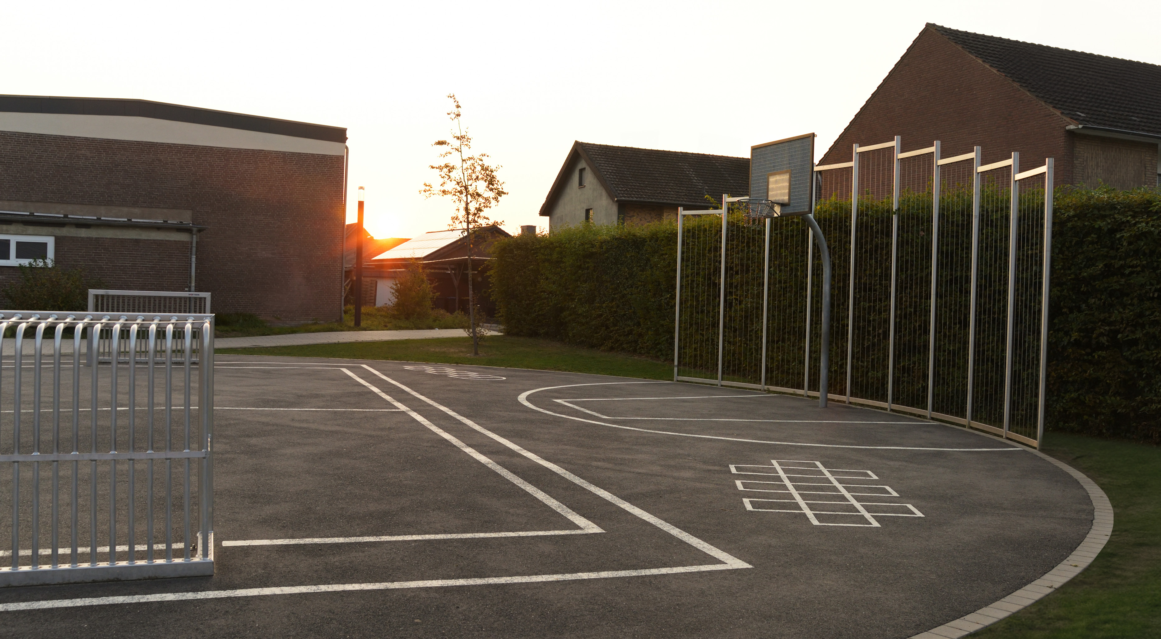 Im Zuge der Erweiterung der Mariengrundschule Kapellen in Geldern wurden die Freianlagen umfassend neugeordnet und erweitert, um den Schülern ein vielfältiges und ansprechendes Umfeld zu bieten. Das Konzept sieht unterschiedliche Funktionsbereiche vor, die durch wechselnde Bodenbeläge klar voneinander abgegrenzt sind und den gesamten Schulhof in verschiedene Nutzungszonen gliedern. Durch die Integration zahlreicher Bestandsbäume und die gezielte Neupflanzung entsteht eine grüne, lebendige Atmosphäre, die zum Spielen, Lernen und Verweilen einlädt.