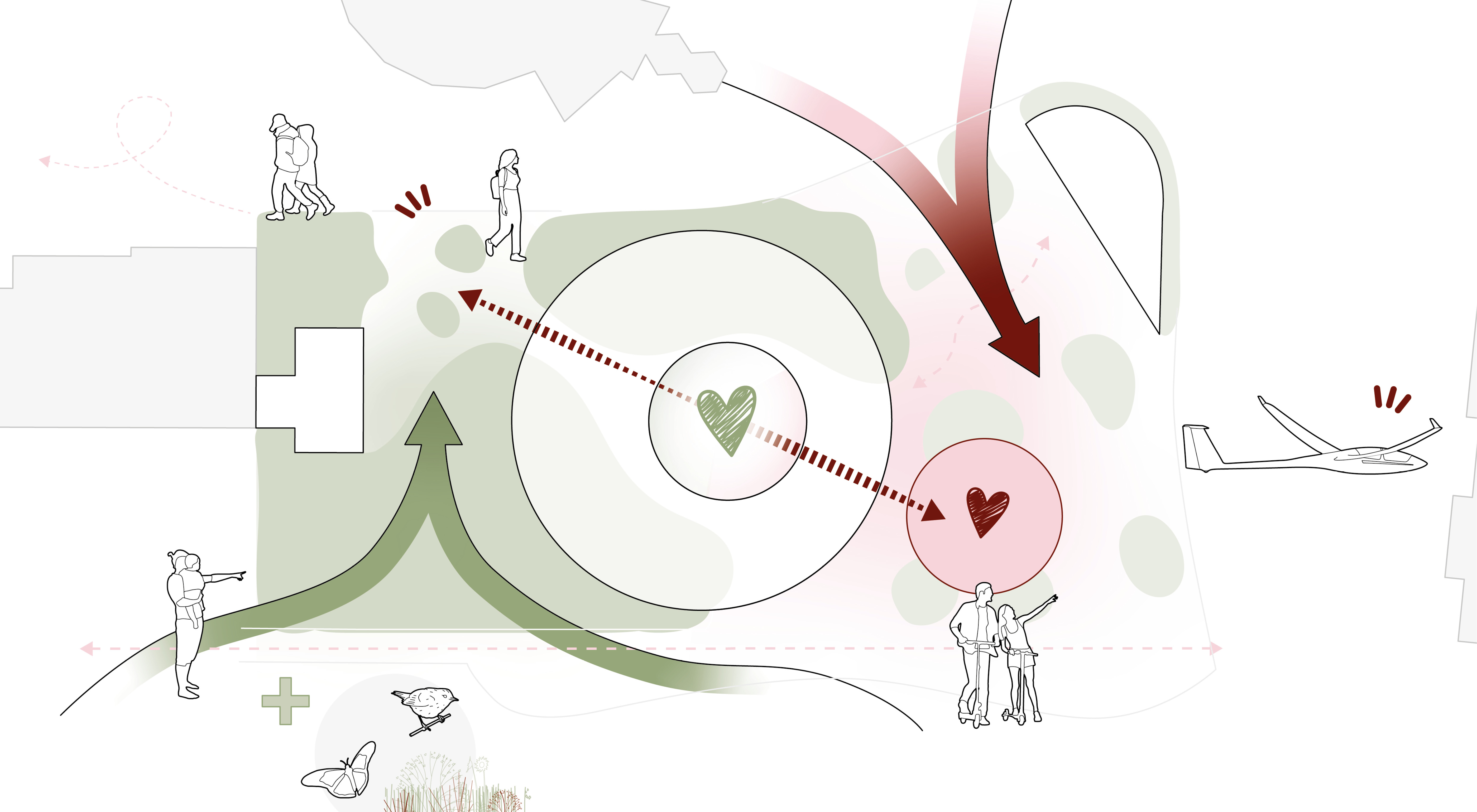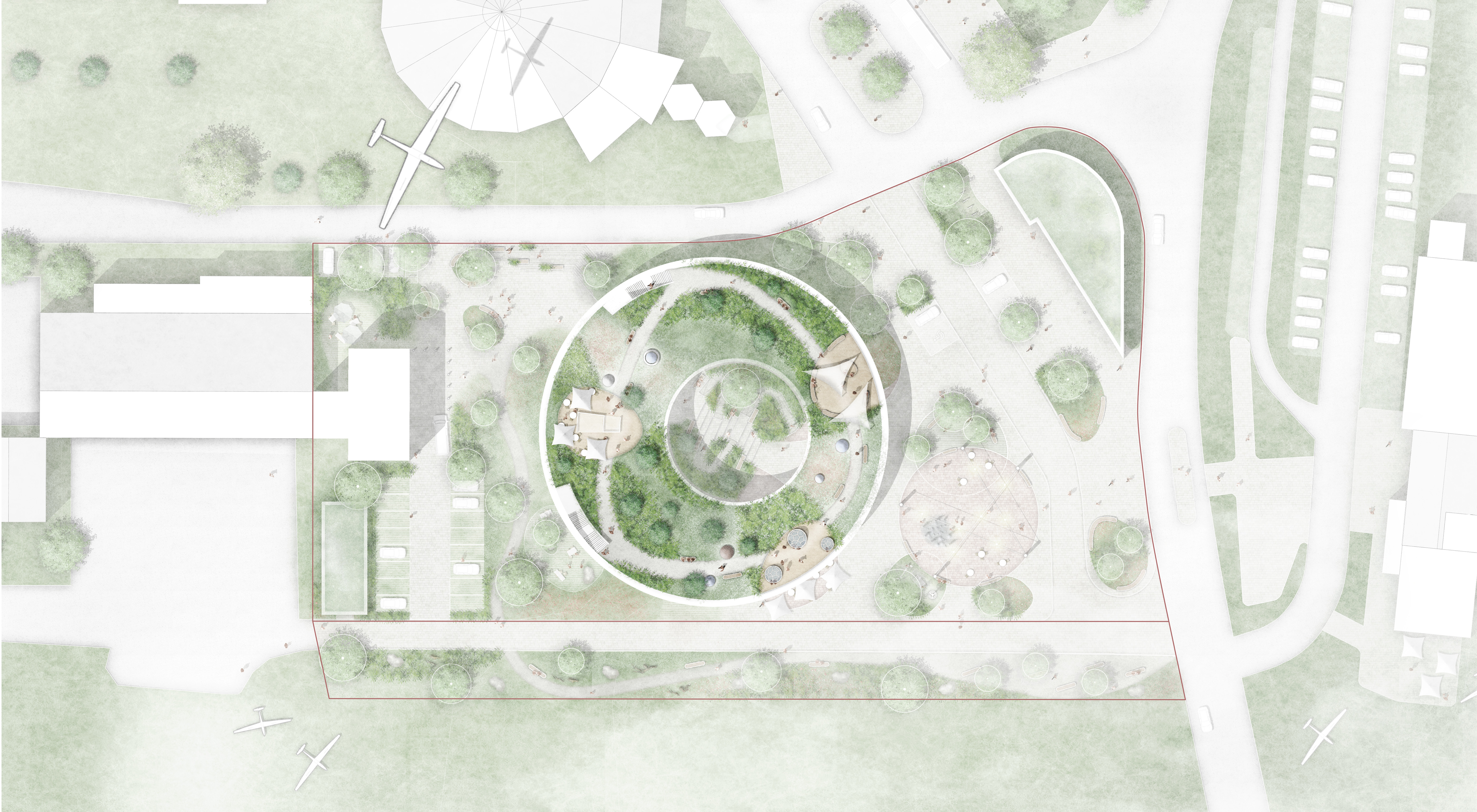 Der Entwurf verbindet die markante Topografie der Wasserkuppe mit einem Freiraumkonzept, das Architektur, Landschaft und Besucherführung harmonisch vereint.
