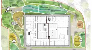 Das Freianlagenkonzept des Kreisarchivs setzt sich mit dem Thema der naturnahen Freiraumgestaltung im städtischen Umfeld auseinander. Es wird sowohl in der Architektur als auch im Freiraum Wert darauf gelegt, möglichst ressourcenschonend zu bauen und sich an den Wertvorstellung des Cradle to Cradle®-Prinzips zu orientieren.